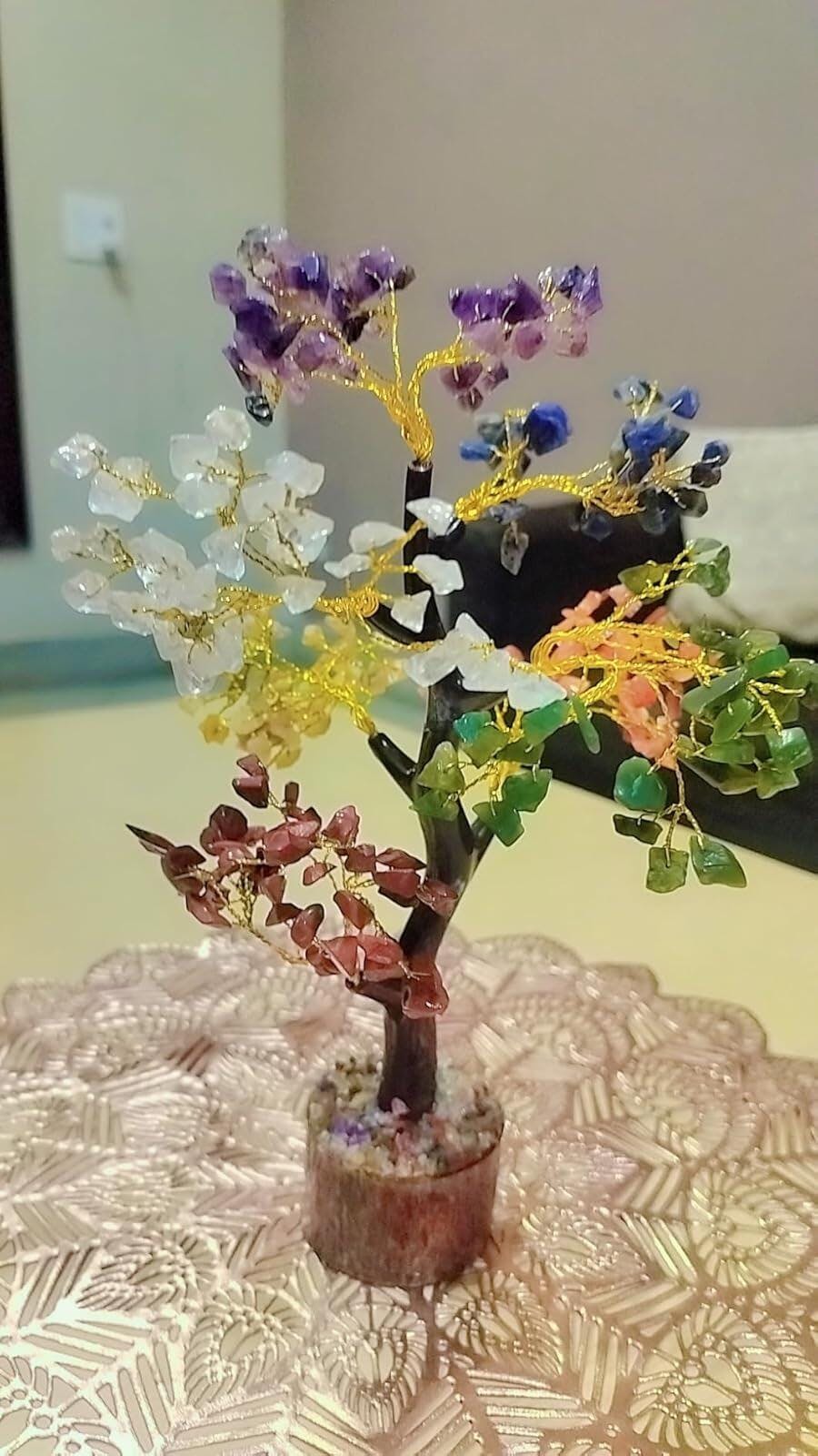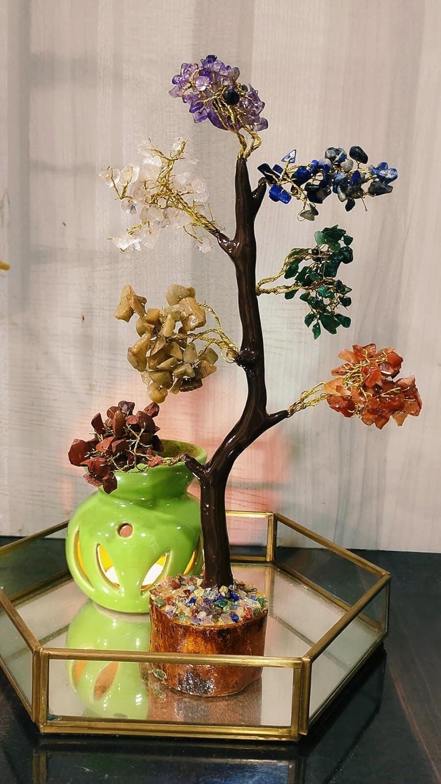 The Seven Chakra Gemstone Tree is a beautifully handcrafted healing crystal showpiece featuring 300 natural 7 Chakra stones designed to promote wealth, peace, health, growth, and spiritual harmony.